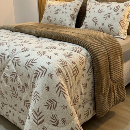 • Kit Coberdrom Malha com Plush Folhas Queen 2,40×2,60