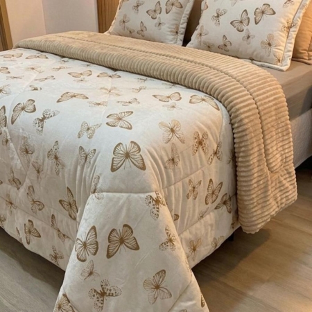 • Kit Coberdrom Malha com Plush Borboletas Queen 2,40×2,60