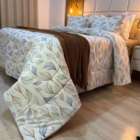 • Kit Edredom Casal 6 peças Malha 100% algodão – Coleção Folhagens