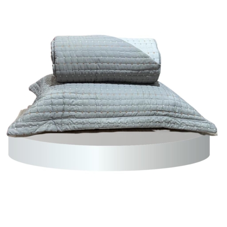 • Kit Colcha Artigiana Cinza/Branco Jolitex Queen 2,40x,2,60