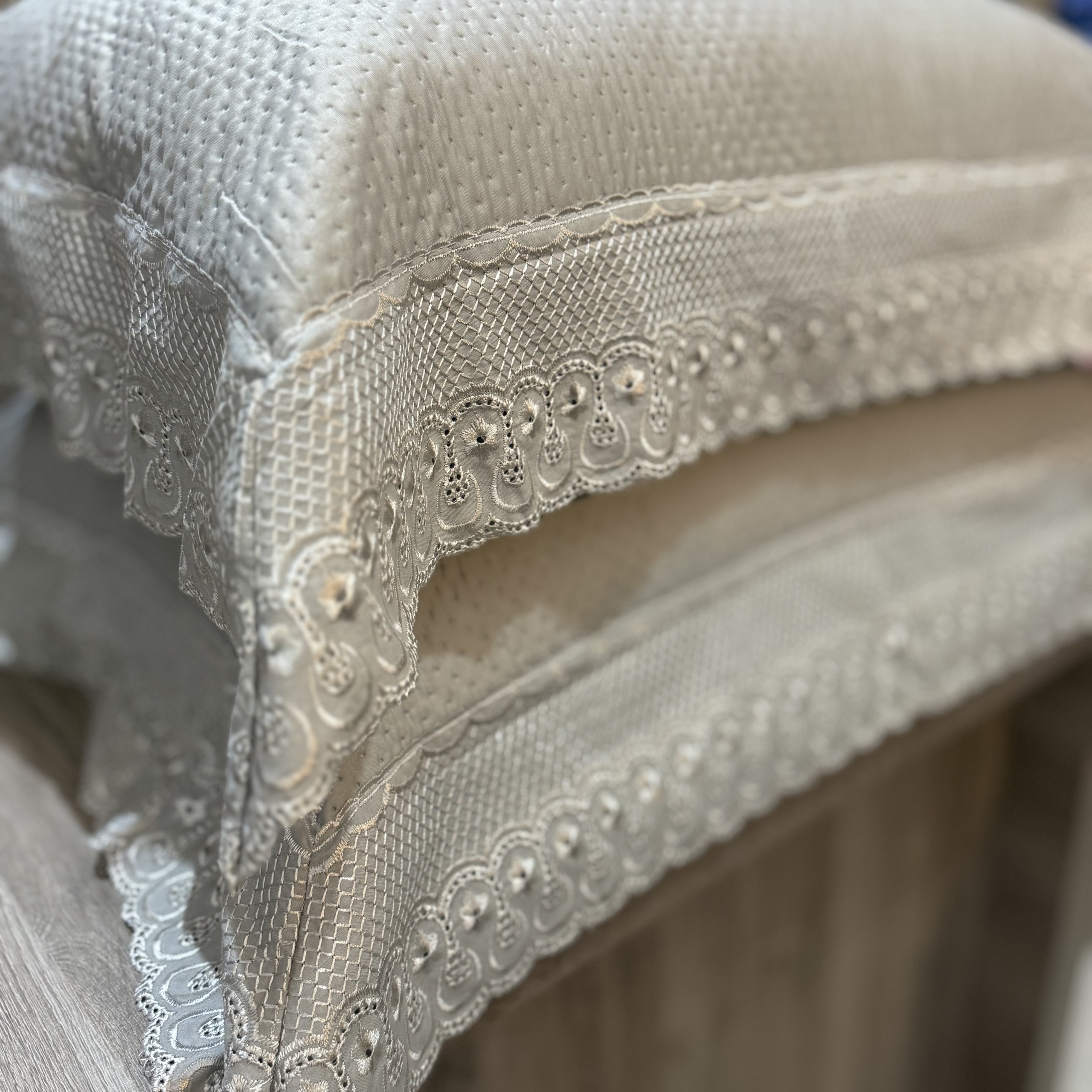 2 Porta-travesseiro com abas e com aplicação de Bordado Inglês 50x70cm - Esse Porta-Travesseiro é matelado com a tecnologia Ultrasonic